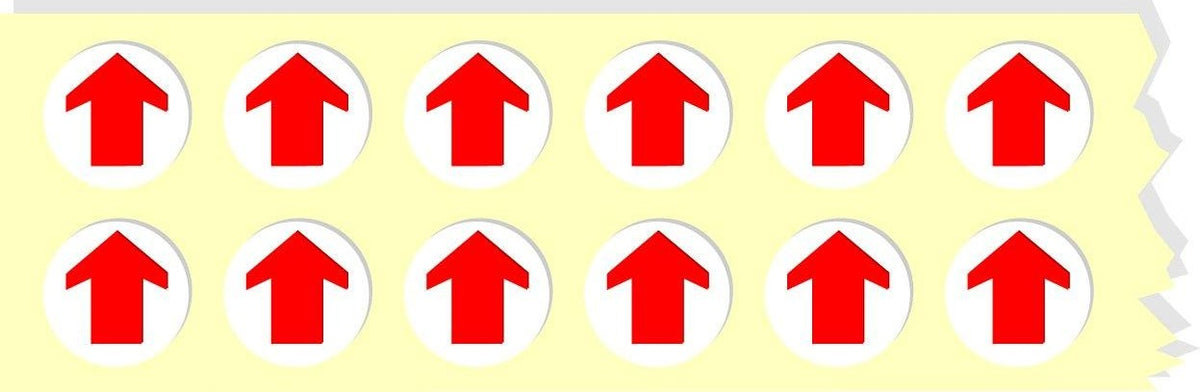 12MM RED ON WHITE CIRCULAR FAULT ARROWS, ROLL OF 2500/5000